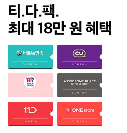 배달의 민족, CU, 배스킨라빈스, 11번가, 투썸플레이스, 원스토어 등 최대 18만원의 혜택이 있는 티다팩도 제공합니다.