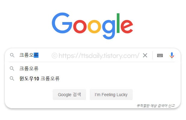 얼마 전부터 갑작스럽게 크롬 브라우저에서 구글에 접속 후, 입력 폼에 검색어를 입력하면 첫 글자가 두 번 중복으로 입력되는 오류가 발생하기 시작했습니다.